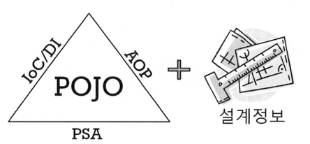 ※ Spring 프레임워크 = POJO로 구성된 애플리케이션 + POJO가 어떻게 관계를 맺고 동작할 것인가를 담은 설계정보